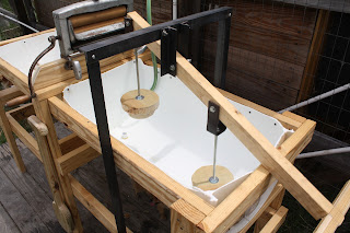 DeleteLove it. Our set up has been using 2 heavy duty black rubber stock tubs, and our homemade 'agitator' (a commercial grade heavy black toilet plunger with holes drilled thru) . With 9 children and this red clay homestead, I need a wringer for sure...we have several loads twice a week here!
